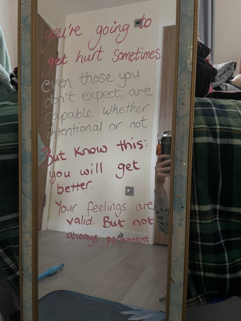 I felt silly for feeling upset and hurt so much about it, because we were never relationship labelled or ‘serious’, there’s a whole myth around what you can and can’t be upset over I think. So I pondered heavily over why it felt like something that wasn’t serious was hurting me so much.